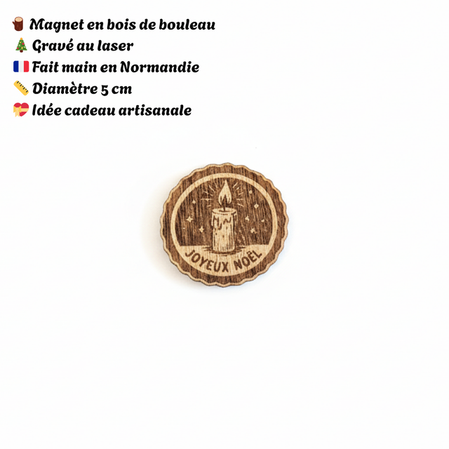 Ce magnet « Bougie de Noël » est réalisé en contreplaqué de bouleau de 3 mm et gravé au laser avec soin dans mon atelier BoujouArt, en Normandie.